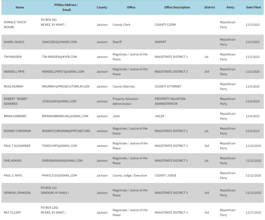 Candidate Filings